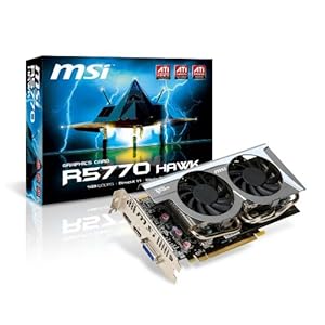 The MSI R5770 Hawk takes gaming graphics to another level. Experience a superior visual experience with the combined power of ATI's HD5770 GPU, and MSI's award-winning Twin Frozr cooling solution. Combined with the industry-leading Afterburner software, over-voltage of the GPU is possible and the V-Check points can be used to monitor performance and stability. The Twin Frozr thermal design uses 8mm SuperPipes to increase cooling capacity, and covers all mission critical components. Military Class components ensure the highest performing gaming experience. Experience heart-pounding, cinematic visuals on your favorite games with the combined power of DirectX 11, ATI Eyefinity, and ATI Stream technologies.